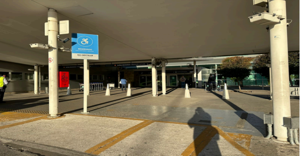 - Wait for your Cabify on the sidewalk level with the horizontal sign indicating "Terminal C, Partidas Aerolíneas Argentinas, Air France, Alitalia..." etc. You will see an area with cones and painted with red lines on the floor.