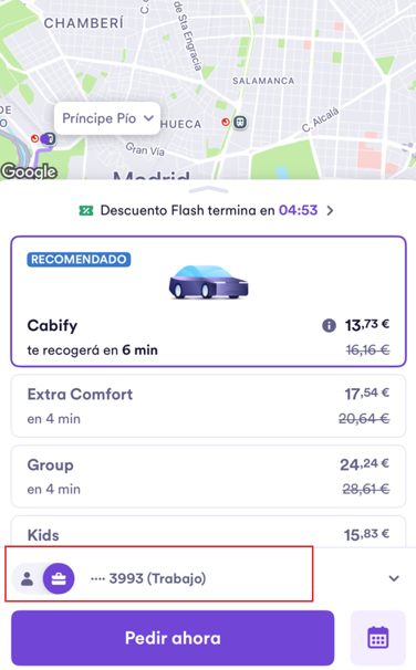 El Perfil de trabajo te permite realizar viajes de empresa desde tu cuenta personal y recibir las facturas automáticamente tras cada viaje o de forma mensual.